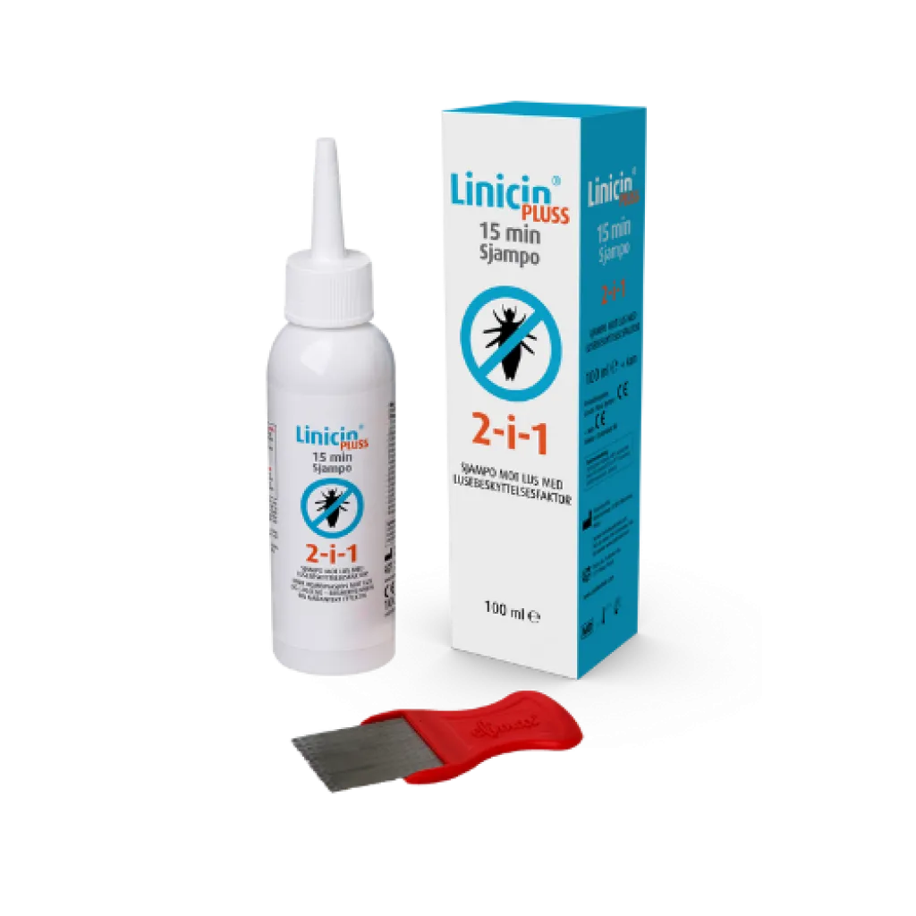 Linicin PLUSS Sjampo er en 2-i-1 lusebehandling som effektivt fjerner lus og luseegg på kun 15 minutter og samtidig beskytter mot nye angrep.