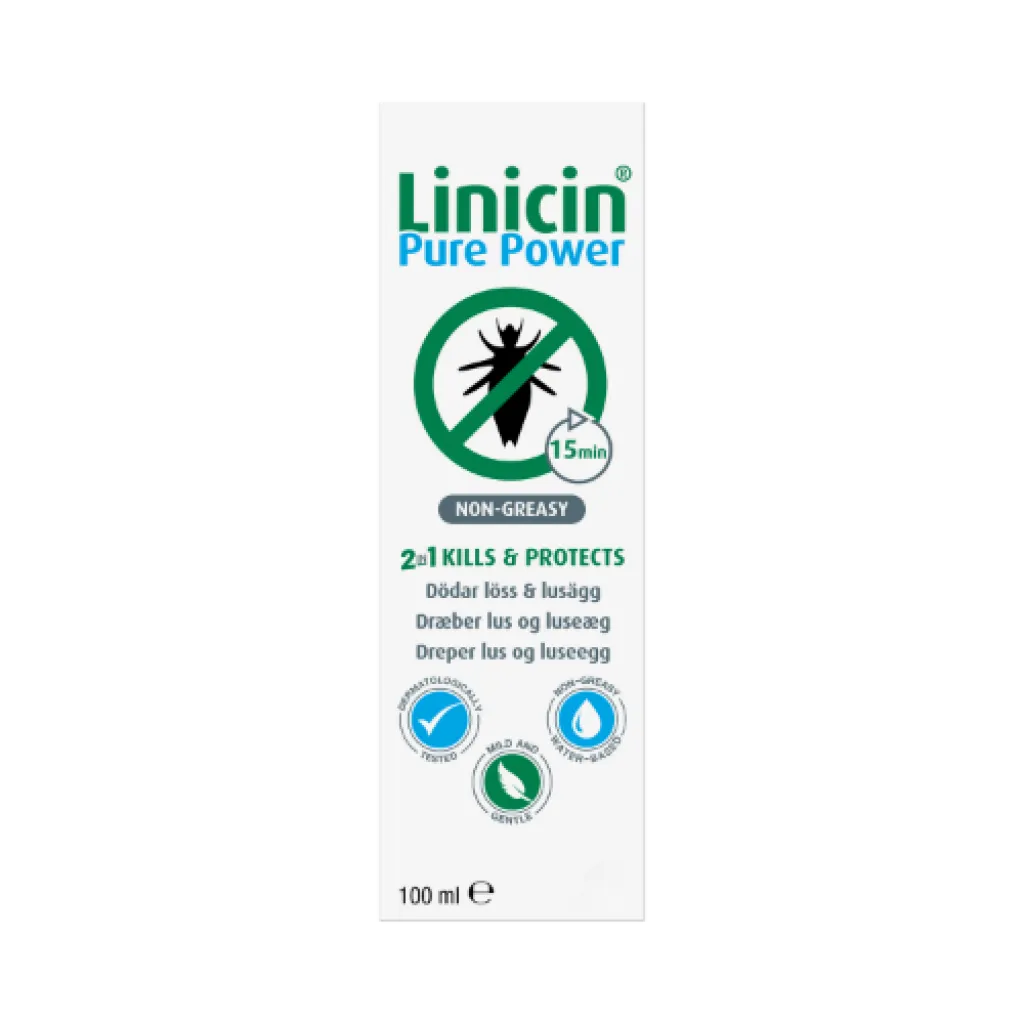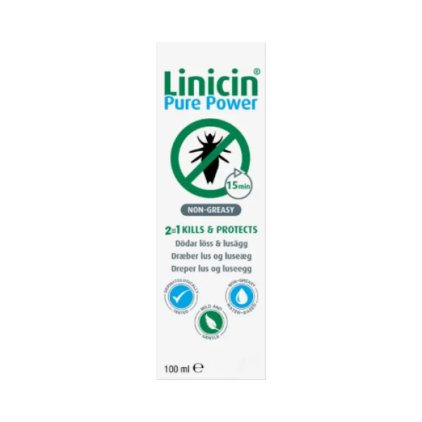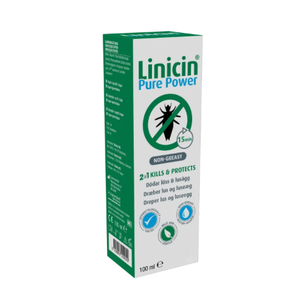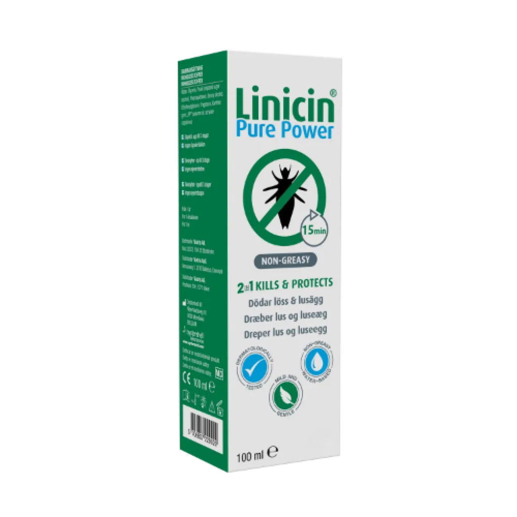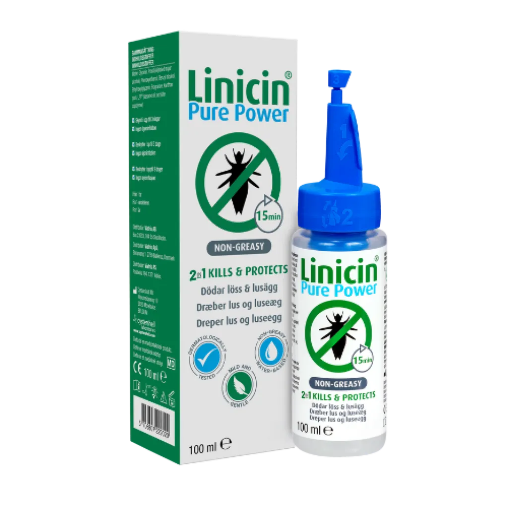 Linicin Pure Power dreper lus og luseegg samt forebygger nye luseangrep i opptil 3 dager etter behandling.